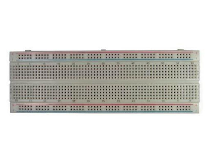 universale Verwendung, schnelle Testaufbauten von Schaltungen, reduziert Entwicklungskosten, zur Längsseite beliebig anreihbar durch Steckverbindungen, Reihen in 5er-Schritten durchnummeriert, Spalten von A bis J gekennzeichnet, insgesamt 64 Reihen und 10 Spalten$$ Klebestreifen auf Rückseite, zusätzlich 2 x 2 Spalten a 50 Reihen zur seperaten Spannungszuführung, auch als Breadboard oder Steckbrett bekannt Gesamtkontakte 830, Spalten 10, Reihen 63, Spalten (Versorgung) 4, Reihen (Versorgung) 50, Rastermaß (RM) 2,54mm, Maße ( LxBxH) 165 x 564 x 8,5mm