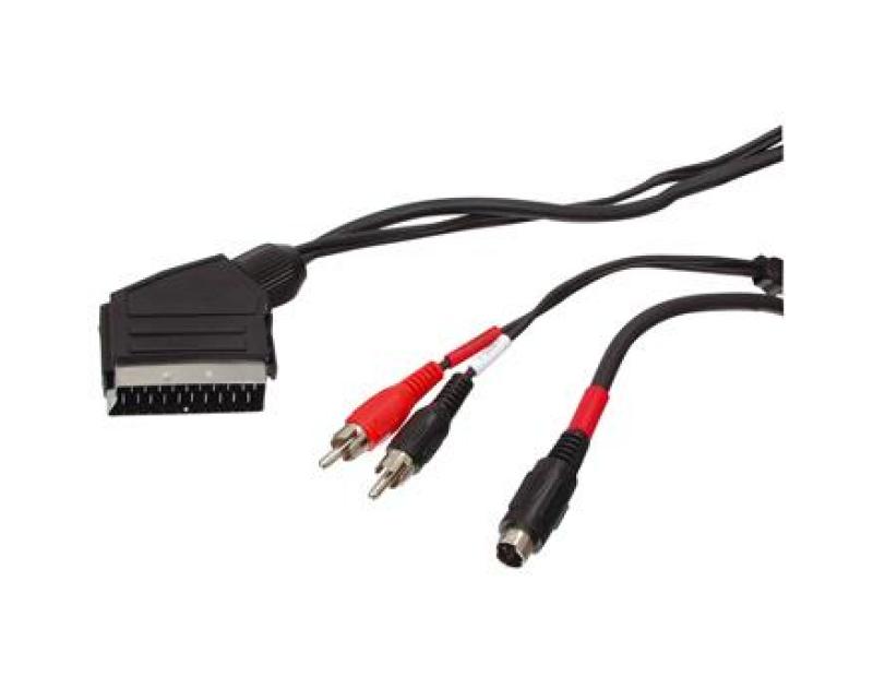 Adapterkabel 1xSCART Stecker auf 1xMini DIN Stecker 4 pol + 2x Cinchstecker, Länge: 1.5m