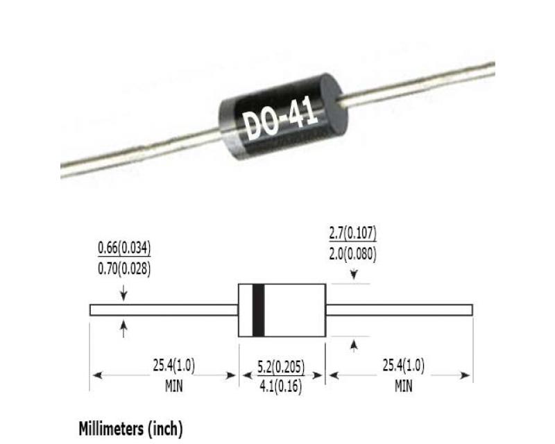 Silicon general purpose diode, 100V, 1A, type: DO41