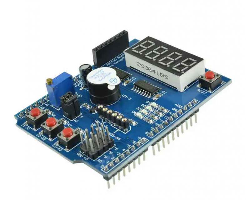 Erweiterungsboard, 7 Segmentanzeige, Schieberegister, Summer, Poti, Taster