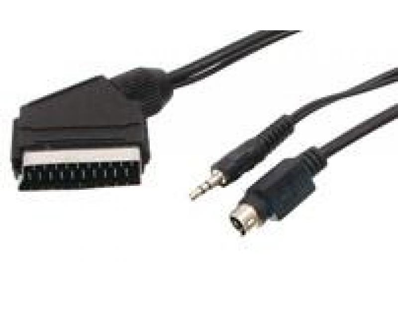 Adapterkabel 1xSCART Stecker auf 1xMini DIN Stecker 4 pol + 3.5mm Klinkenstecker stereo, Länge: 1.5m