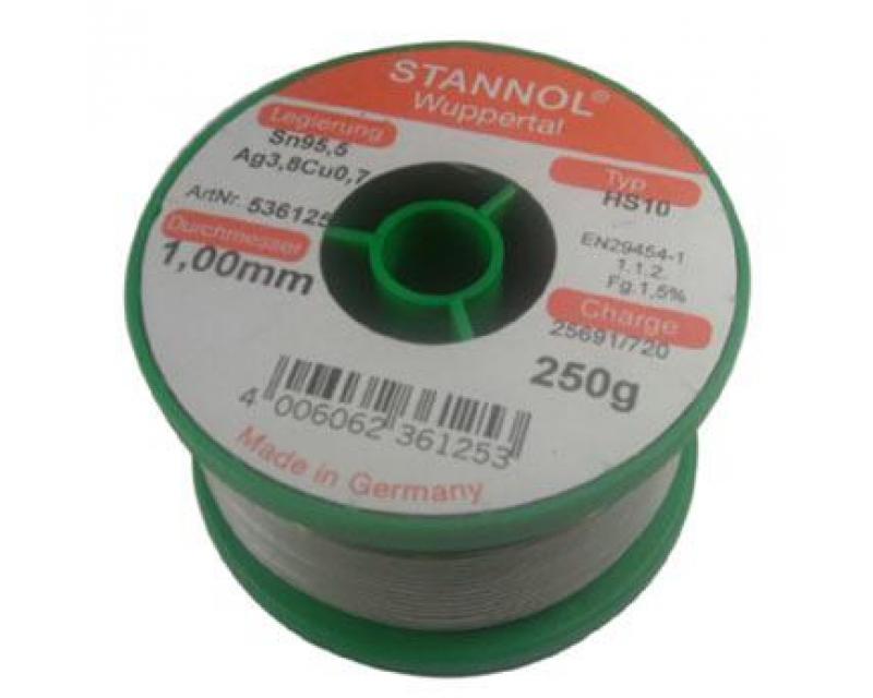 TSC, Ecoloy, Menge 250 gr, Durchmesser 1mm, Material Sn95,5Ag3,8Cu0,7, Schmelzpunkt +217°C, Flussmittel einseelig 2.5%