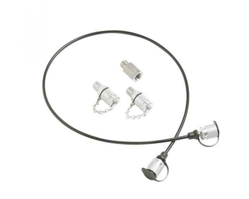 The Fluke 700HTH-1 hydraulic test hose is a 10,000 psi, 690 bar working pressure test hose that features stainless steel and nylon construction for use in connecting a Fluke-700HTP-1 or other hydraulic test pump to a unit under test.