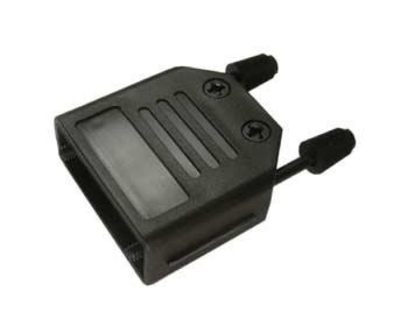 Cover made of two parts, contiguous shell casings, quick assembly by engaging the casing halves, strain relief externally threaded with thumbscrews UNC4-40
