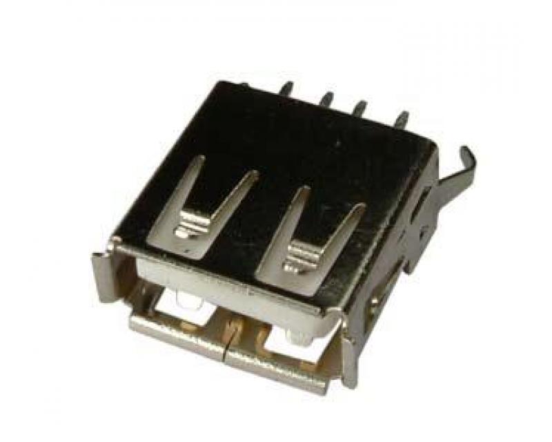 USB socket type A, 180 ° version suiSoldering eyeletle for board mounting, dimensions (excluding pins) (W) 13.3 x 13.2 x 5.0mm