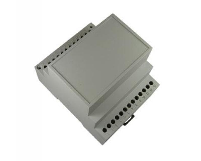 aufhebeln universal housing for mounting on DIN rails, for easy practical snap lock or similar means of a screwdriver, 12 numbered openings in the grid 5:08 for tool feed, lateral openings 12 for respective line Increase / decrease., top and bottom housing together by detents connected additional Fortification 1 by screw (included), internal openings in top and bottom for receiving screws. $$ characteristics dimensions ........................ .......................... 71x71x90 mmFarbe ...................... ...................................... gray cabinet space ......... ....... 2 TE (sub-units)