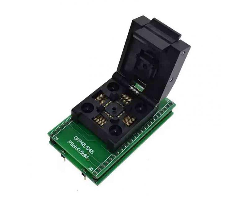 Zero insertion force socket for ICs with QFP48 Pitch 0.5mm on DIP48 pitch 2.54mm / 15mm