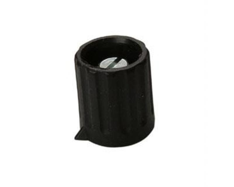 Drehknopf für 4mm Achse, Spannzangenbefestigung, Durchmesser 15mm, Farbe: schwarz matt, mit Pfeil