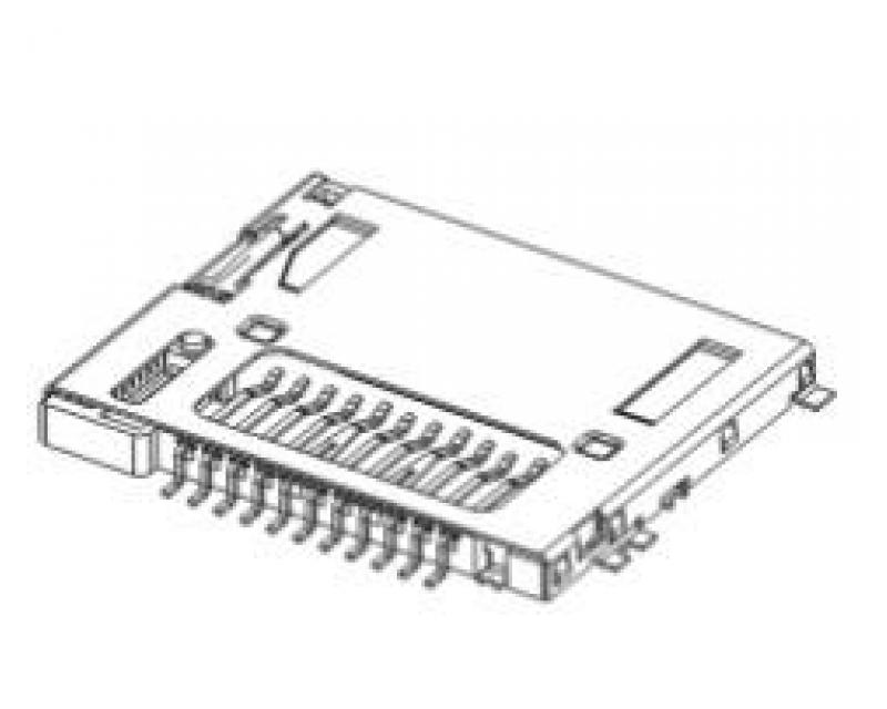 Storage medium: miniSD, sputum: push / push, Features: Media Detection switches, write protection detection, low-cost, installation SMD, Operating temp range up to + 60 ° C, gold-plated contacts -25 °, measures (T x W x H), ca 26.9 x 21 x 2.2 mm