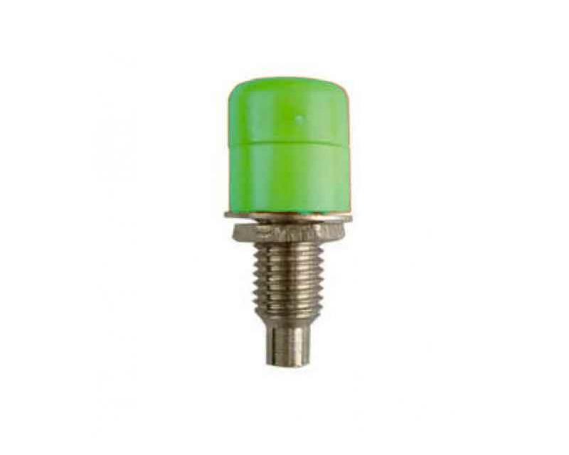 Lötanschluß, passend für 4mm Labor-/Bananenstecker, vollisoliert, komplett zerlegbar, bestehend aus: Korpus mit 4mm Aufnahme und Lötanschluß, Frontkappe für Einlaßöffnung, Distanzstück, Mutter und Unterlegscheibe.