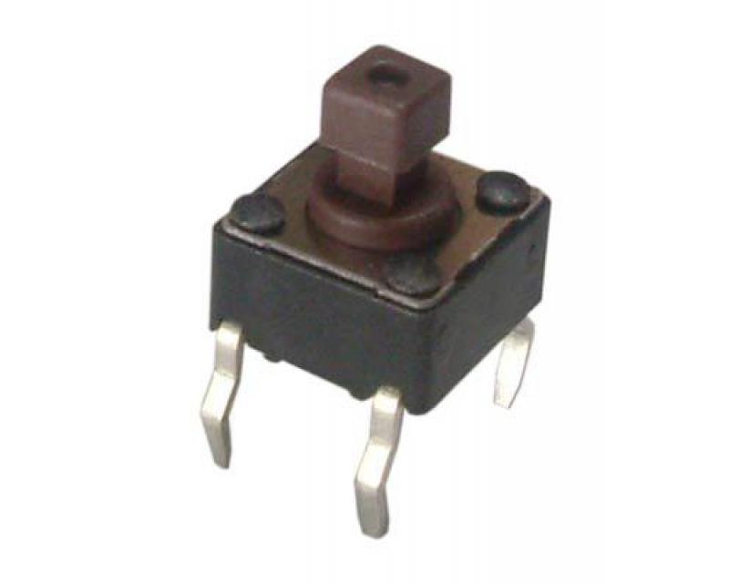 SPST- NO, Raster 6,5/4,5 mm, Maße 6 x 6 mm, Kontaktbelastbarkeit 0,5 A / 12 V, Betätigungskraft: 1.5N, Aufnahme für Kappe, LowCost