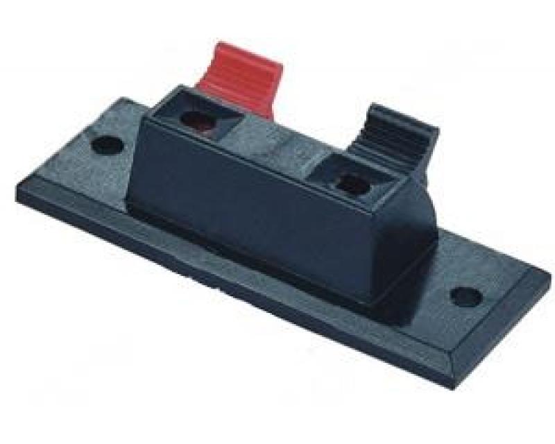 Speaker connector, built-in, 1x2 terminals, black / red, size: 21x55mm, terminal connection via spring contact, hole spacing: 44,8mm