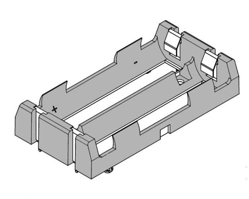 Batterijhouder, afmetingen: 77x39x14mm, voor 2x18650 druk montage