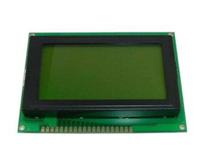 128x64 pixel Grafik Display, gelbe LED-Hintergrundbeleuchtung, Pixelgröße: 0.40 x 0.40 mm, Sichtbarer Bereich: 60x32.6mm, Modulgröße: 75x52.7x9.6mm