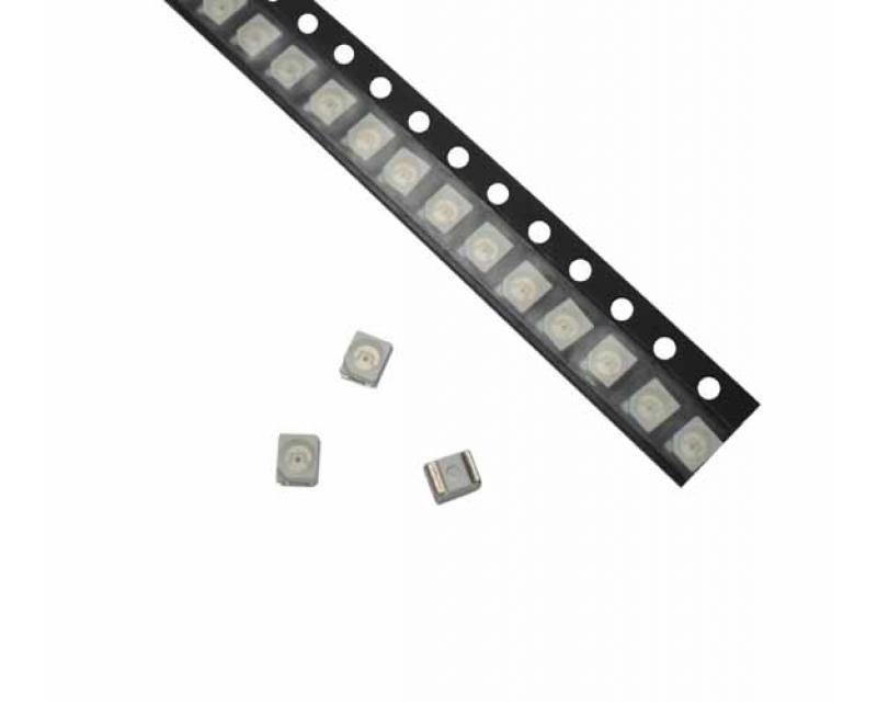 Bauform: PLCC4, Farbe: grün Linse: klar, transparent, Spannung: 3,3-3.8V 30mA Abstrahlwinkel: 120° Helligkeit: 1120-2800mcd