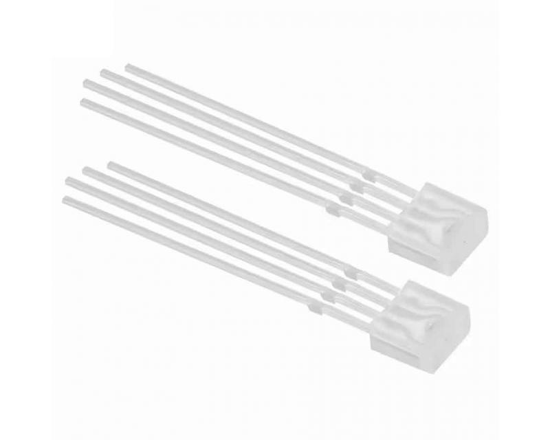 Maße: 2x5x5mm Farbe: RGB Linse: diffus Helligkeit: 150mcd,180mcd, 150mcd, Abstrahlwinkel: 50°, Durchlasspannung: 1.86V,1 .9VV, 3.5V, Strom: 20mA, gemeinsame Kathode