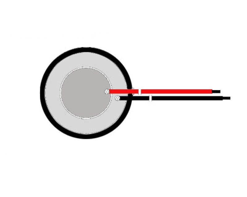 Elektromagnetischer Summer, Spannung: max 30V, Nennspannung 5V, Nennstrom: 1.5mA, 70dB, Resonanzfrequenz: 1250Hz, Temp: -20 bis +100°C, Durchmesser: 35mm, Höhe: 2mm, 12cm Anschlußkabel