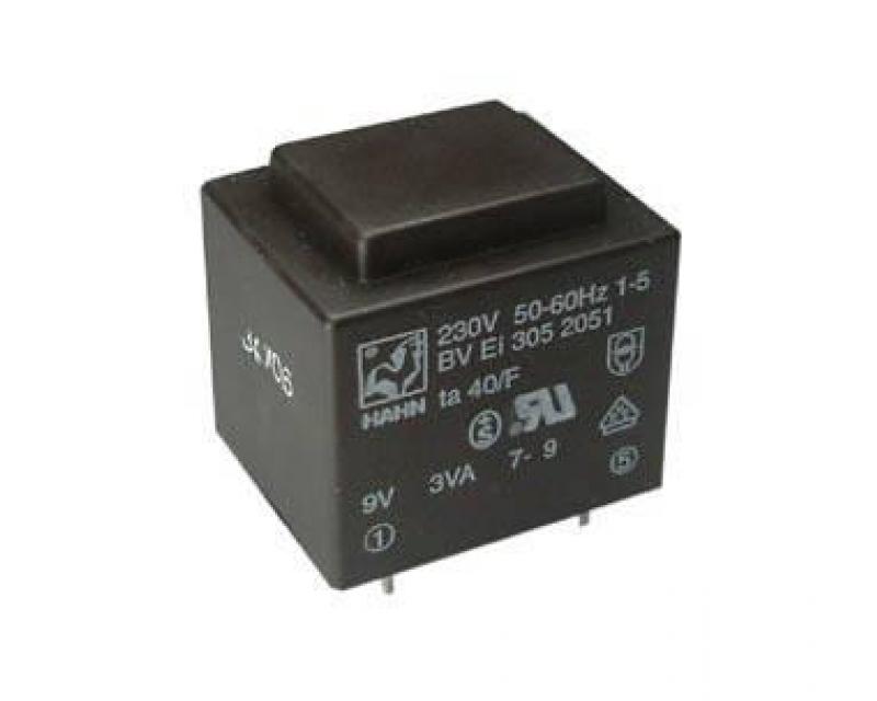Primärspannung: 230V AC, Sekundärspannung: 1x9V AC, Strom: 55mA, kurzschlußfest, mit VDE-, CE Prüfzeichen, Maße: 21.7x22.6x19mm, unbedingt kurzschlußfest