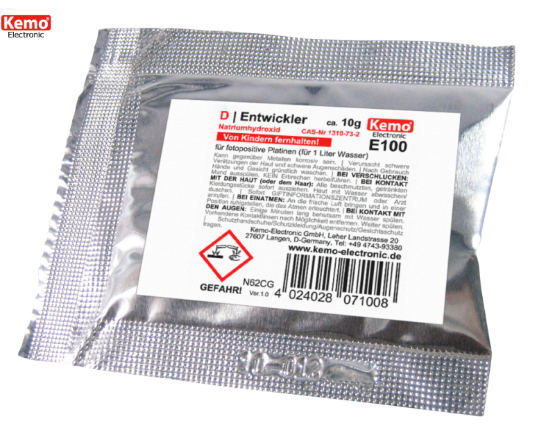 Natriumhydroxyd zum Entwickeln von fotopositiv beschichtetem Basismaterial, Verbrauch: 10gr/Liter