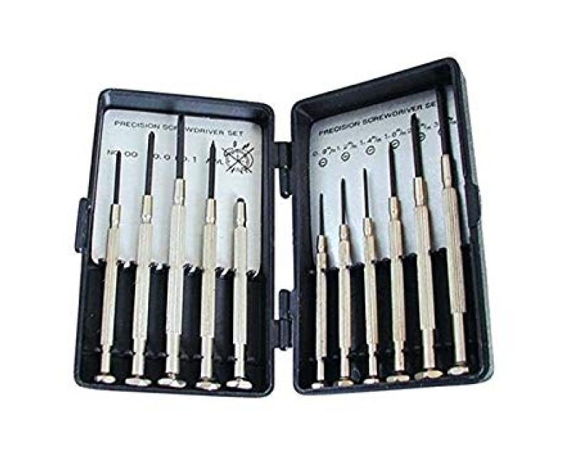 drehbare Kappe, gehärtete rostbeständige Klingen, praktische Aufbewahrungsbox, Lieferumfang: je 1 Schlitzschraubendreher 1,4mm / 2.0mm / 2.4mm / 3.0 mm je 1 Kreuzschraubendreher Größe 0 / Größe 1